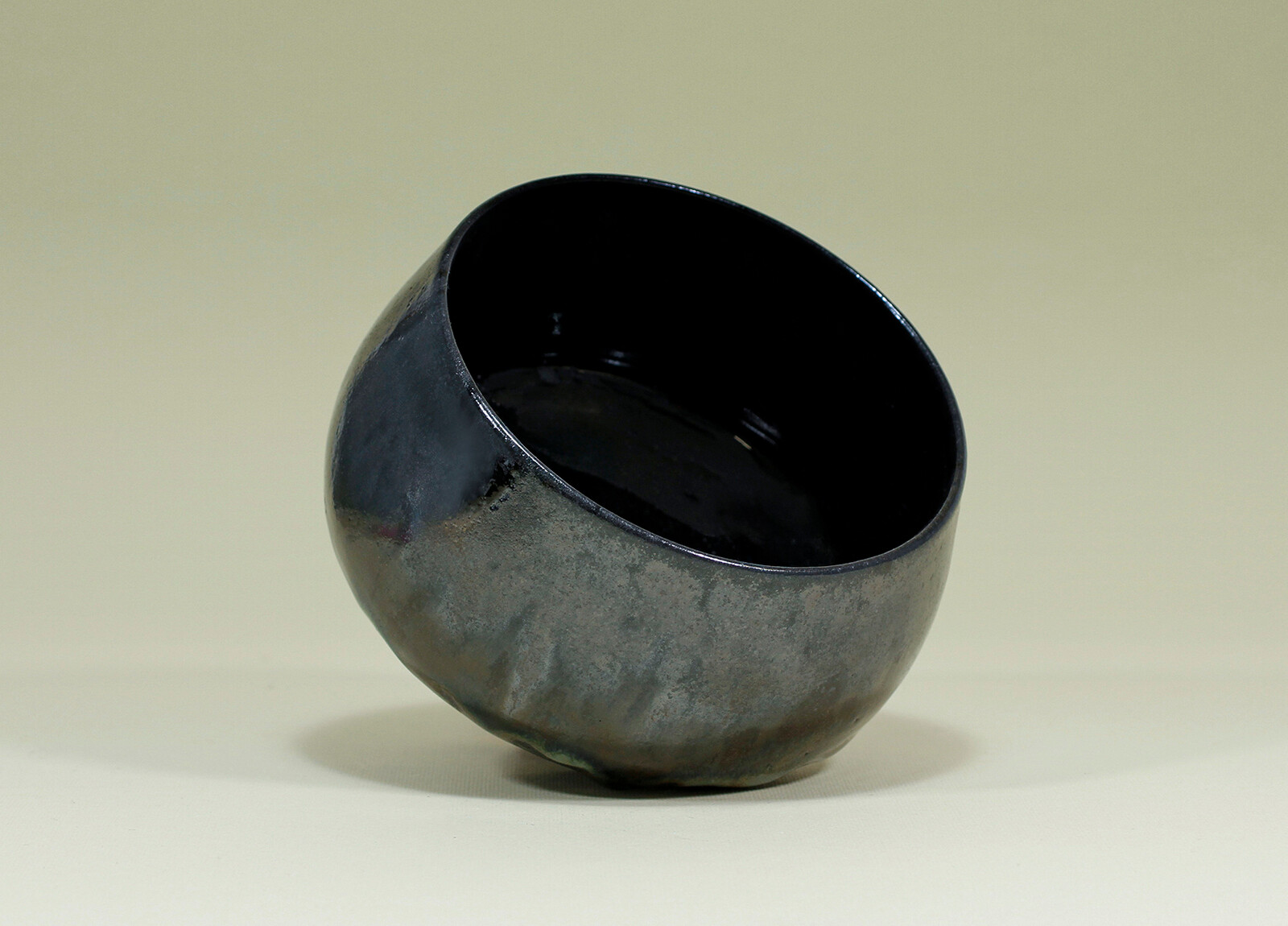 Ceramiczna czarka wykonana z czarnej gliny, na kole garncarskim. Elegancka o głębokim grafitowym odcieniu, zachwyca lekko zaokrągloną formą i delikatnie płynnym szkliwem przy krawędzi. Matowo-połyskowa powierzchnia nadaje jej nowoczesny charakter, a szkliwione wnętrze sprawia, że świetnie nadaje się do herbaty, sosów lub drobnych przekąsek.